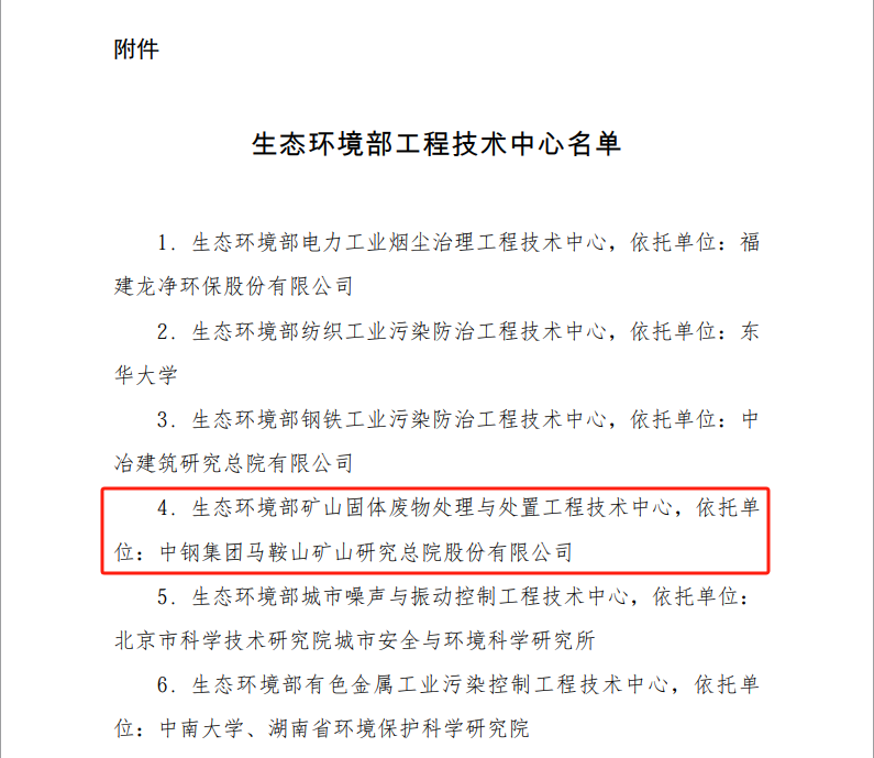 近日,生态环境部印发《关于公布生态环境部工程技术中心名单的通知》(环科财函〔2026〕17号),中钢矿院作为依托单位建设的生态环境部矿山固体废物处理与处置工程技术中心(下文简称“固废中心”)顺利通过专项评估考核,成功纳入2026—2030年生态环境部工程技术中心运行管理序列。