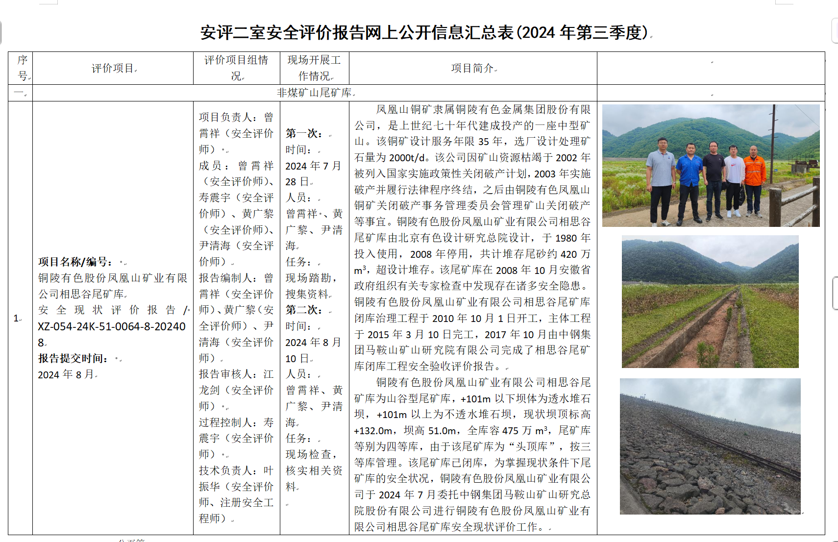 安评二室安全评价报告网上公开信息汇总表(2024年第三季度)