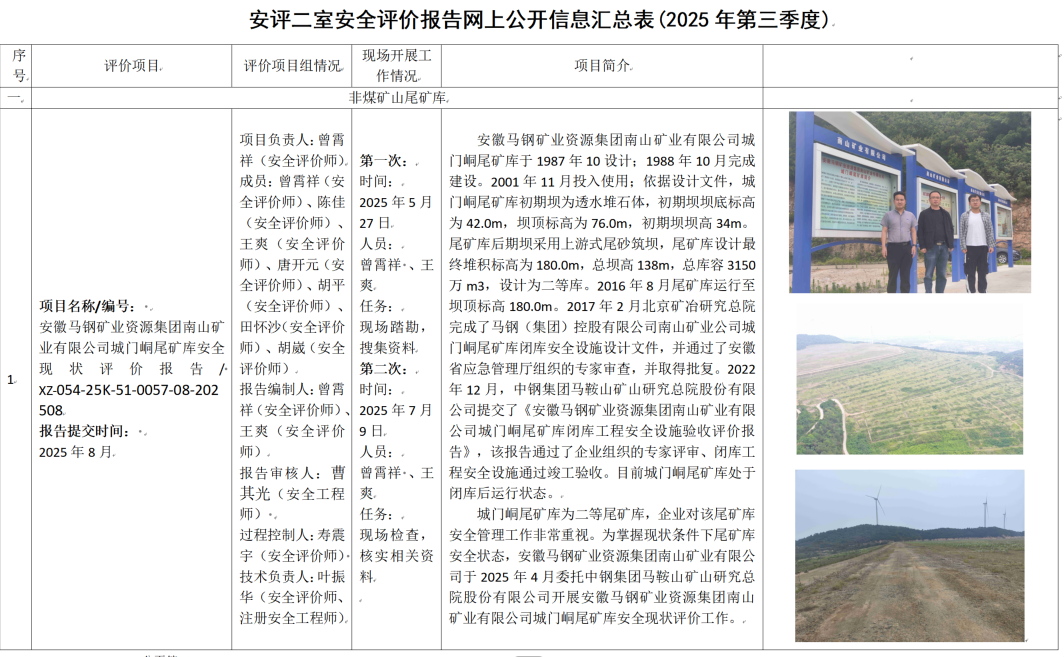 - 安评二室安全评价报告网上公开信息汇总表(2025年第三季度)