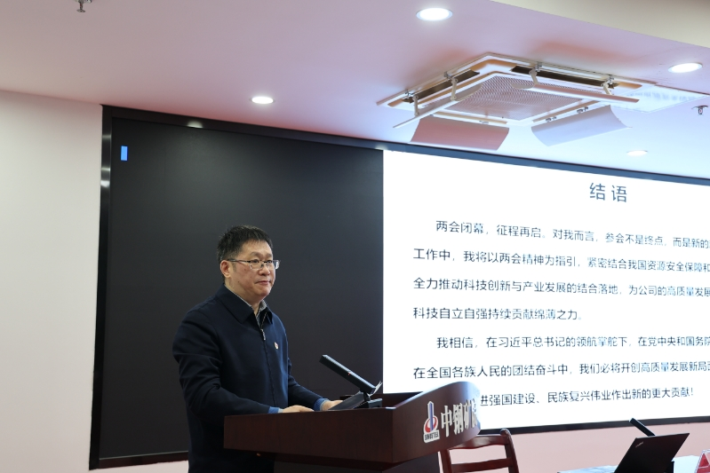 今年全国两会是在“十四五”圆满收官、“十五五”开局起步的关键节点召开的一次十分重要的大会。王运敏院士全程参加十四届全国人大四次会议,忠实履行代表职责。报告会上,王运敏结合亲历盛会的体会和履职思考,系统传达了习近平总书记在全国两会期间的重要讲话精神、政府工作报告主要精神,详细解读了“十五五”规划纲要草案、“两高”工作报告等内容。王运敏勉励公司全体干部职工牢记科技报国初心,在战略性矿产资源开发利用关键核心技术上持续攻关,将学习成果转化为推动公司高质量发展的实际行动。